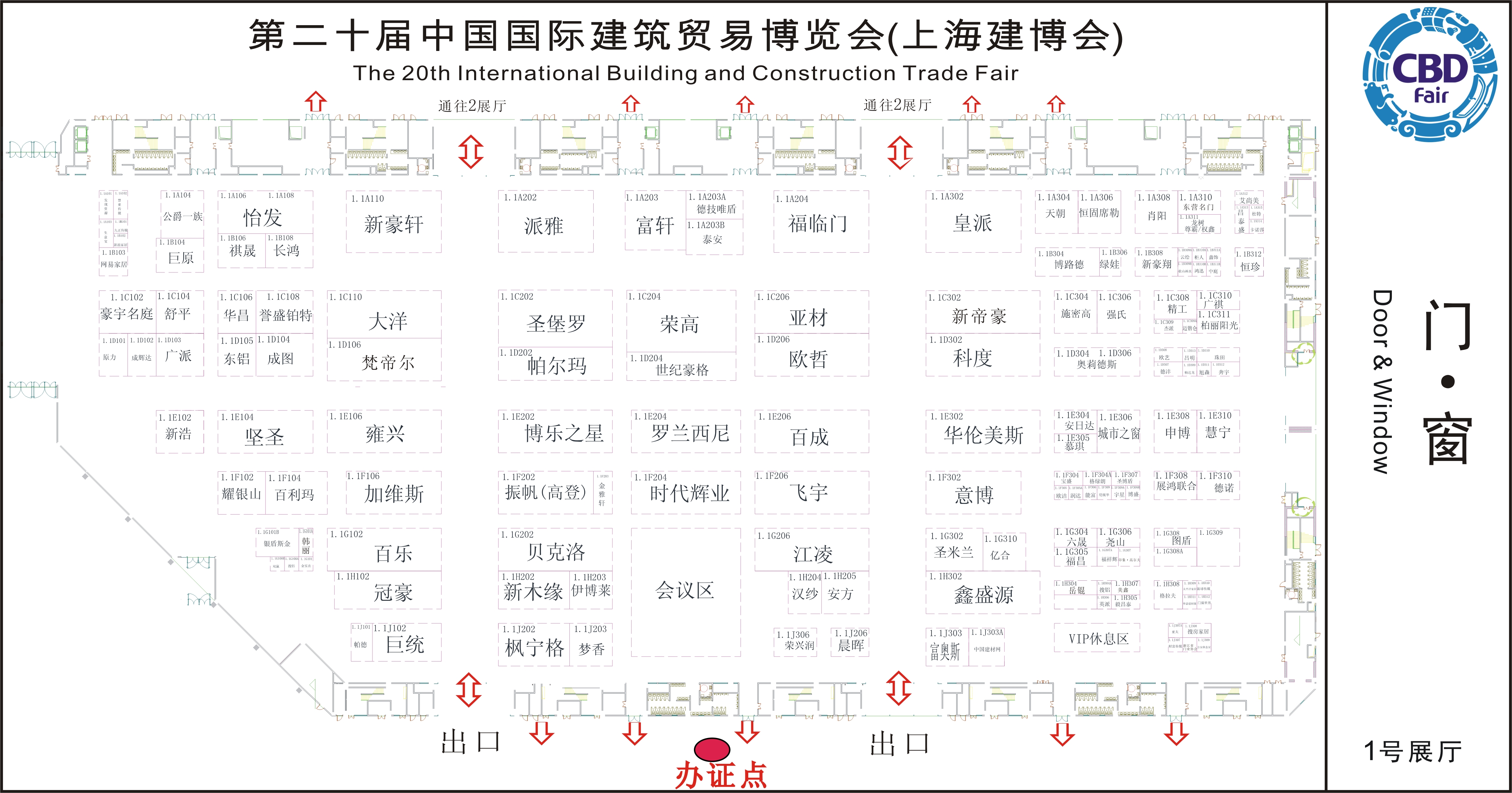 1號展廳門窗品牌展位分布情況如下:
