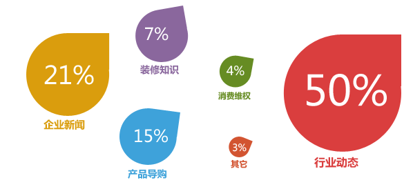 木門行業(yè)動態(tài)新聞發(fā)布量占比相對領(lǐng)先。企業(yè)新聞?wù)急?strong>僅21%,整體偏少,且絕大多數(shù)企業(yè)新聞集中在一線木門品牌,二三線企業(yè)品牌宣傳意識仍需加強,滿足消費需求的軟新聞比例尚待提高。