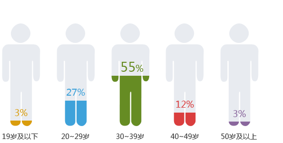 20-29、30-39兩個年齡段分別以27%和55%占據(jù)了木門行業(yè)互聯(lián)網(wǎng)關(guān)注人群的主要部分。由于80、90后新房購買需求力度大,使用互聯(lián)網(wǎng)程度高,是互聯(lián)網(wǎng)主要的潛在消費群。企業(yè)在做互聯(lián)網(wǎng)品牌營銷和產(chǎn)品推廣時可針對這兩個年齡段人群的主要特征進行。