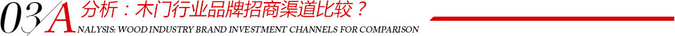 根據(jù)業(yè)內(nèi)人士介紹,目前木門行業(yè)品牌招商渠道主要有五類,即傳統(tǒng)的招商專員渠道、報(bào)刊雜志招商、圈內(nèi)相互推薦渠道及當(dāng)代新型的展會(huì)招商和互聯(lián)網(wǎng)招商渠道。